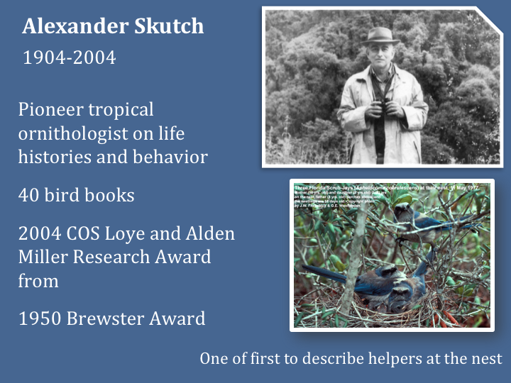Well, my membership of 50+ years in AOU/COS/AOS have really flown. I has a Marcia Brady Tucker to travel to my first meeting @ U Florida. Gave my first paper with Roger Tory Peterson as chair. Paper was on the waxy tips in Cedar Waxwings. Afterward, CG Sibley cam up and said something to the effect that “you know something about birds and chemistry, would you like to come to Cornell as a postdoc?” Funny how these things work, he also subsequently made a call to UConn to set me up for my first job! Now, years later, I’m Auk editor, Stu Houston was memorials editor. He calls and says he’s been trying to get Sibley’s memorial from Ken Corbin (then at UMinn). Ken was a grad student with Sibley at Cornell and followed him to Yale. Stu asked if I put any pressure on Corbin to finish. So we talked and he agreed to co-author. Then we started to talk about Ahlquist. At the time we had a word limit on memorials. But Ken and I decided to not only expand the Sibley text to to invite Jon to write. No limits on either words or content. You saw what happened.