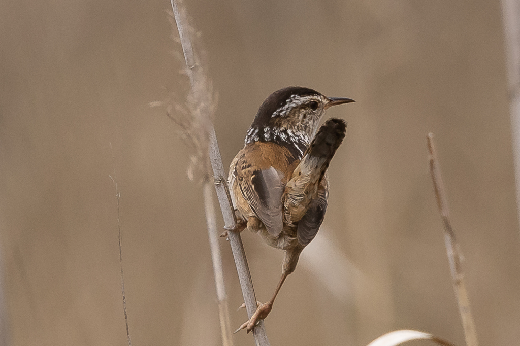 Since the late 1980s, we’ve known of an abrupt transition in Marsh Wren singing styles across the Great Plains of the United States. To the west of the transition zone, songs are harsh, grating, and highly variable, with each male having a large repertoire of up to 150 different songs. To the east, songs are semi-musical and far more homogeneous, and males learn only about 50 different songs.
